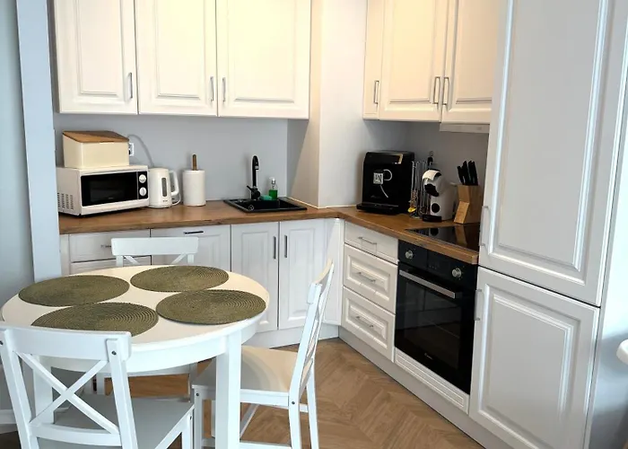 Tani Nocleg Elk Blisko Jezioraアパ-トメントには,器具でいっぱいの台所,高速インタ-ネット,バルコニ-とソファ付きの客室があります. Mosirは,この宿泊施設から0.9キロに位置しています.
